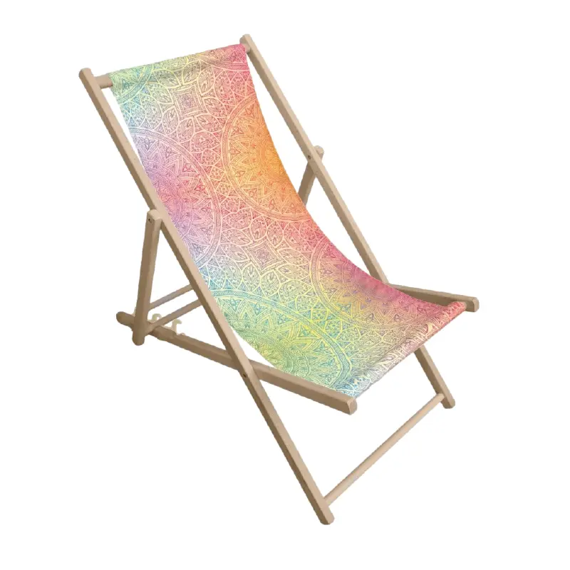 Klassisk solstol i trä med ett slitstarkt polyestertyg som digitaltrycks i helt egen design på ena sidan. Trycktekniken är sublimeringstryck vilket innebär obegränsat antal färger och toningar, samt att designen går att göra utfallande över kanterna.